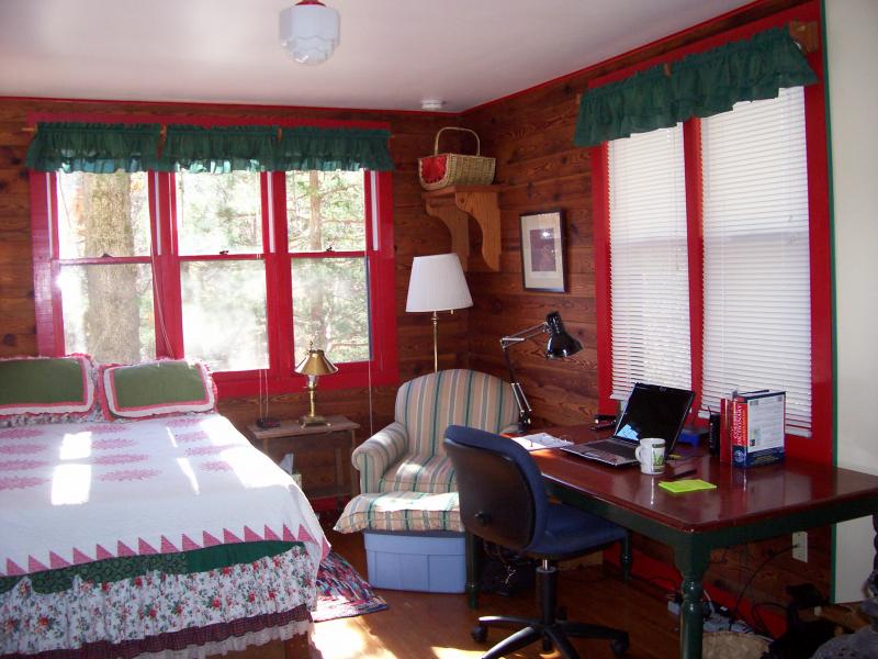 The Tulip Room of the farmhouse at the Writers' Colony at Dairy Hollow in Eureka Springs, AR, where much of Geese to a Poor Market was written. The books and laptop are mine.